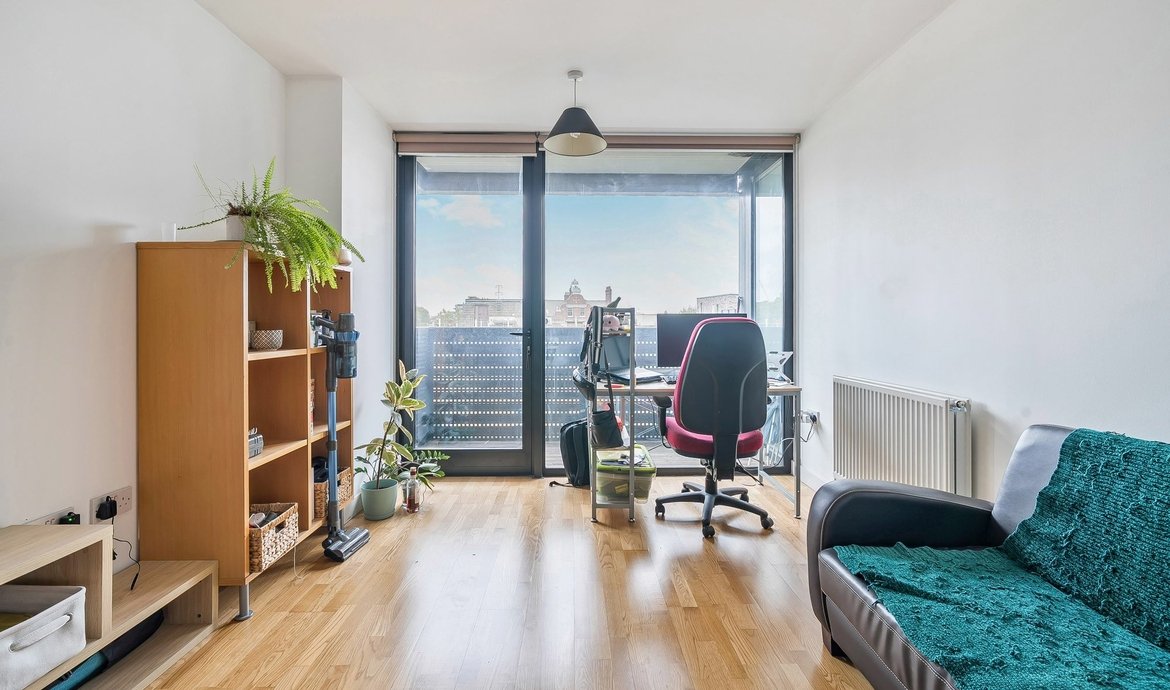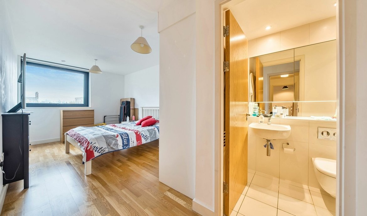 Presenting a contemporary two double bedroom property set in a secure gated development, providing ample space for comfortable living, complemented by an en-suite shower room and spacious main bathroom. The interior features wooden flooring throughout, leading to a private balcony view great views.