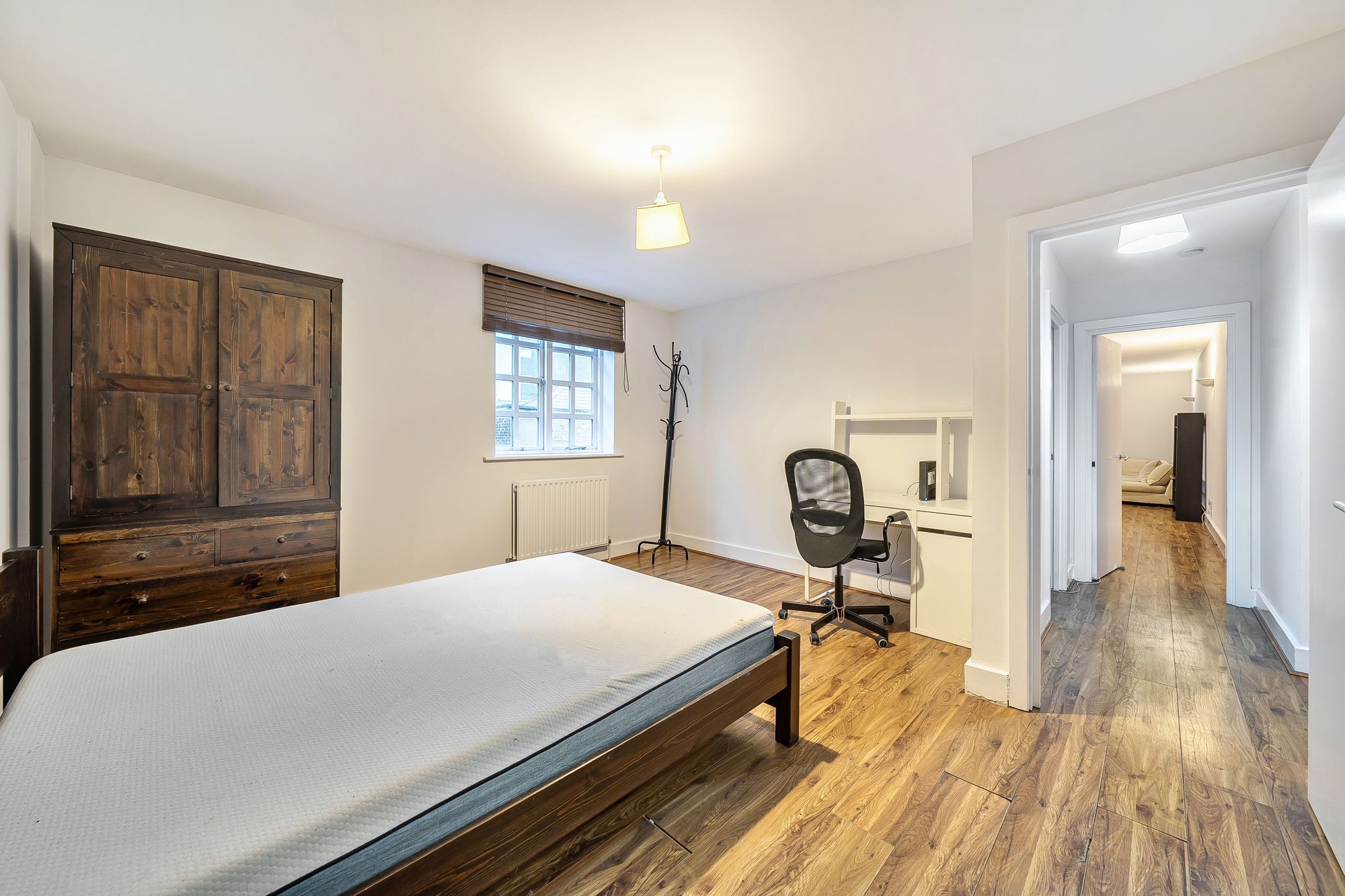 This second floor flat is offered fully or part furnished and has been freshly decorated throughout, providing a bright and contemporary living environment. The spacious open-plan reception room is complemented by a modern fitted kitchen, equipped with integrated appliances and ample storage. Both bedrooms are generously sized, with the principal bedroom benefiting from an en-suite shower room. The second bathroom is finished to a high standard, featuring a full-size bath and quality fixtures.
