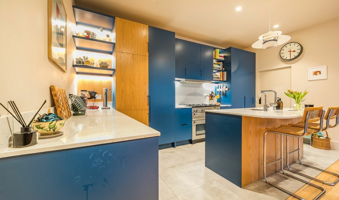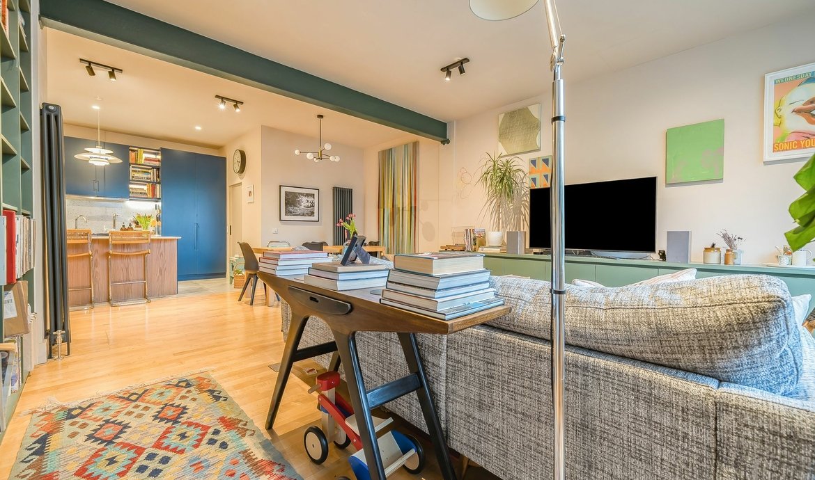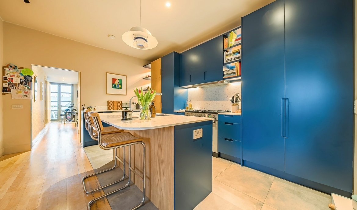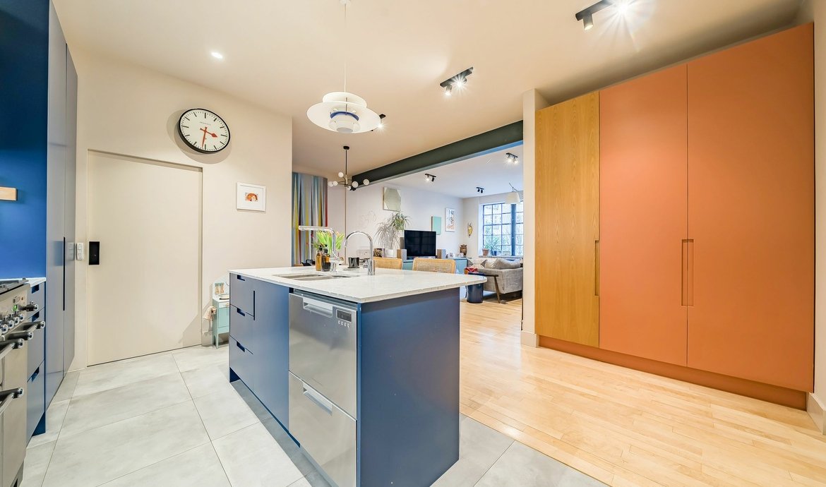 The property features a generously proportioned open-plan living and kitchen area, enhanced by large windows that flood the space with natural light, creating a bright and inviting atmosphere ideal for both relaxing and entertaining. The bespoke kitchen has been beautifully designed with high-quality fittings and integrated appliances, offering ample storage and workspace for culinary enthusiasts.