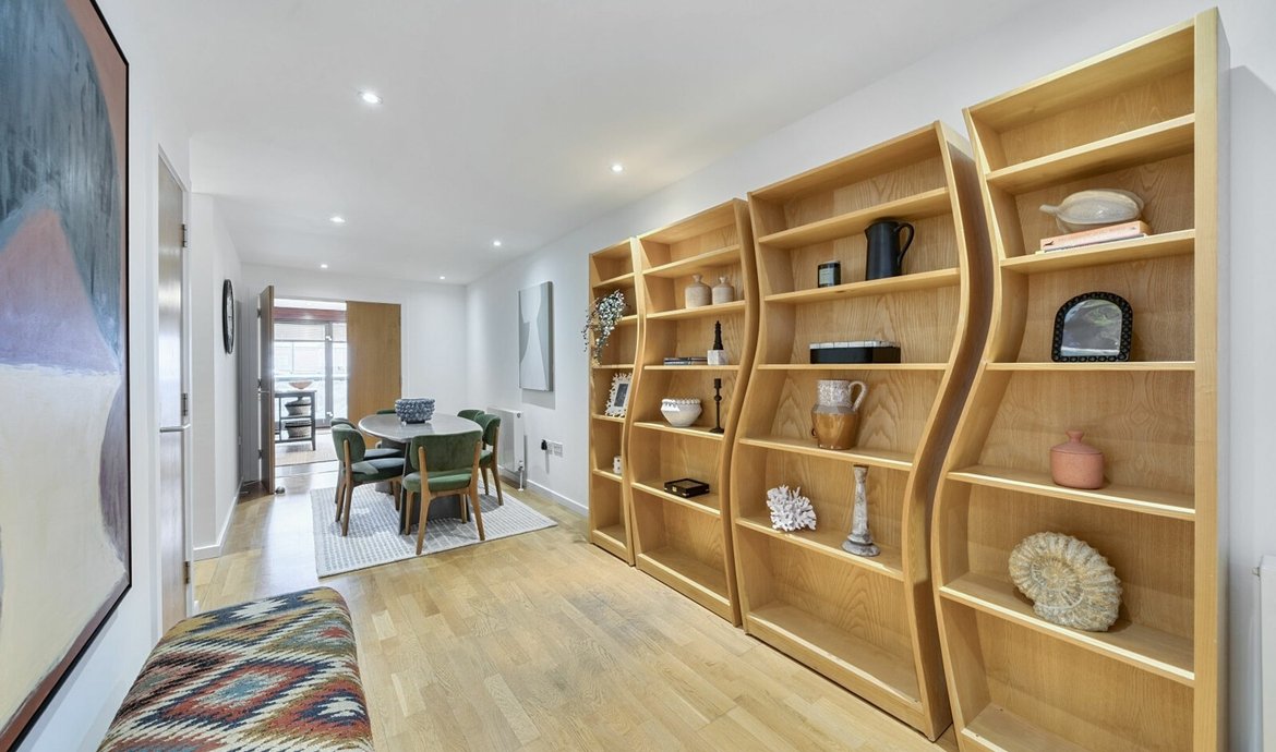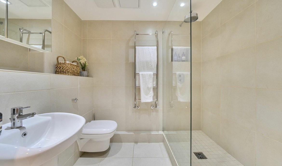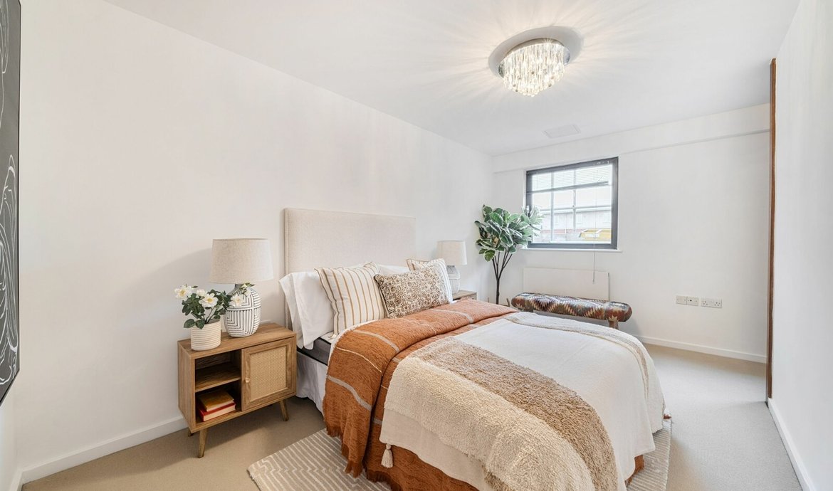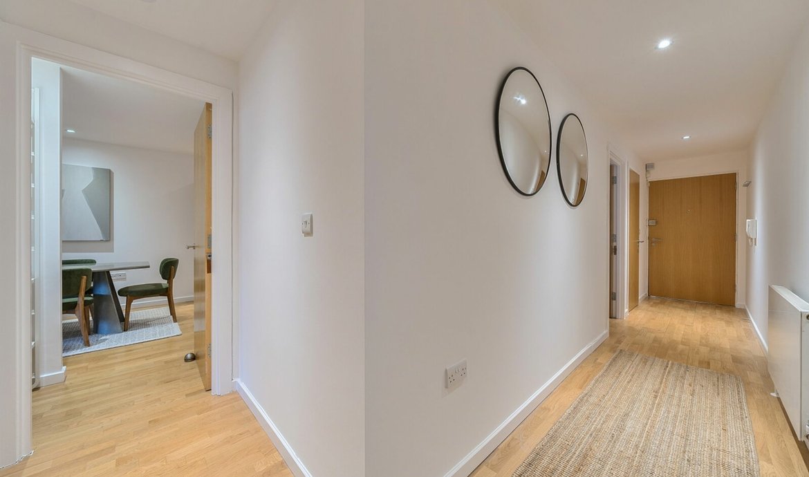 Nestled within a secluded mews just off the vibrant Bermondsey Street, this particularly spacious and carefully crafted residence spans a generous 1,000 square feet, boasting a beautifully presented interior. On the 4th floor, there are two entrances to the apartment and the sizeable entrance hall provides scope for excellent storage. The main living area is nothing short of impressive, offering an excellent amount of space that seamlessly combines a comfortable living area with a designated dining space, perfect for entertaining. The fully fitted kitchen/breakfast room features modern appliances and sleek finishes including ample work surfaces space. Currently furnished with an island unit and breakfast bar, this could easily be replaced by a breakfast/ kitchen table. Sliding full height and full width double glazed doors open to the wide balcony. There are two double bedrooms, with the main bedroom boasting a superb en-suite shower room for added convenience. The second bedroom offers ample space for guests, children or conversion into a home office - a versatile space to suit your individual needs. Residents can also enjoy access to a communal roof terrace, offering panoramic views of the capital's iconic skyline. A parking space in Bell Yard Mews may be available for rent.
