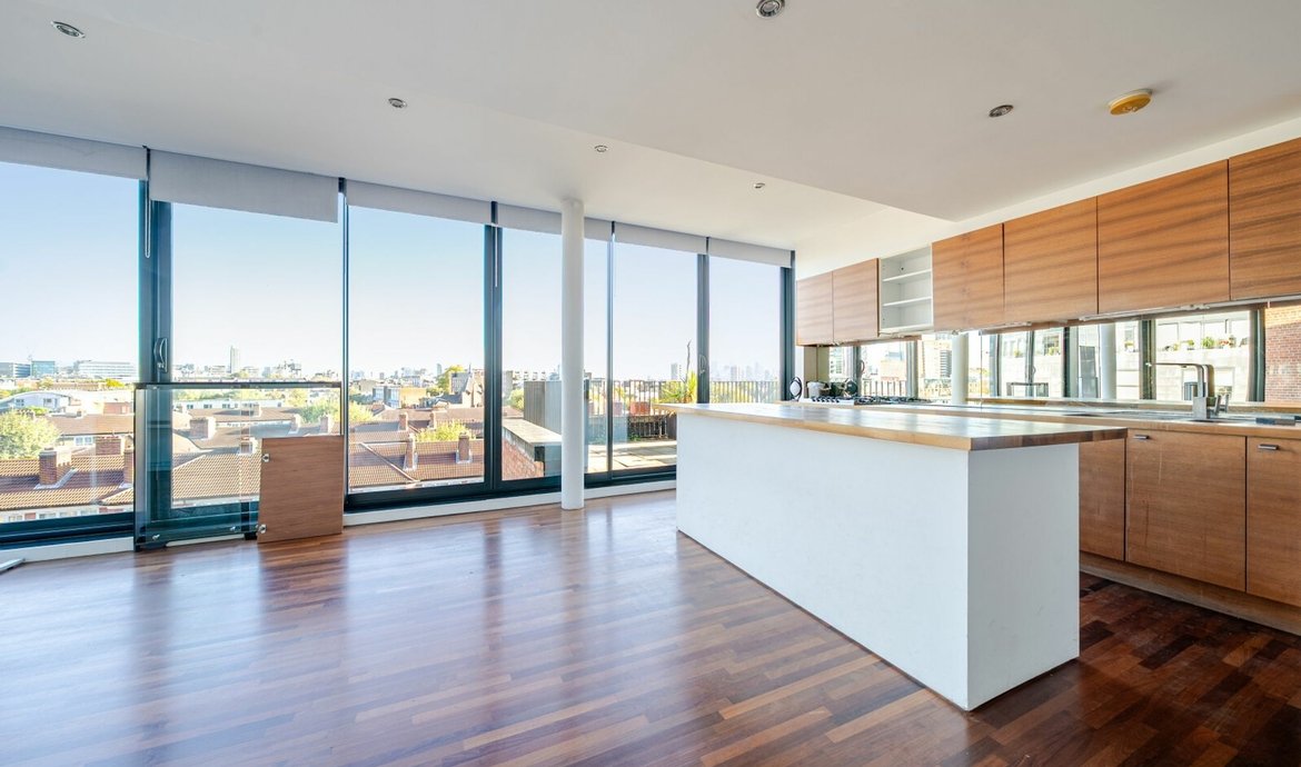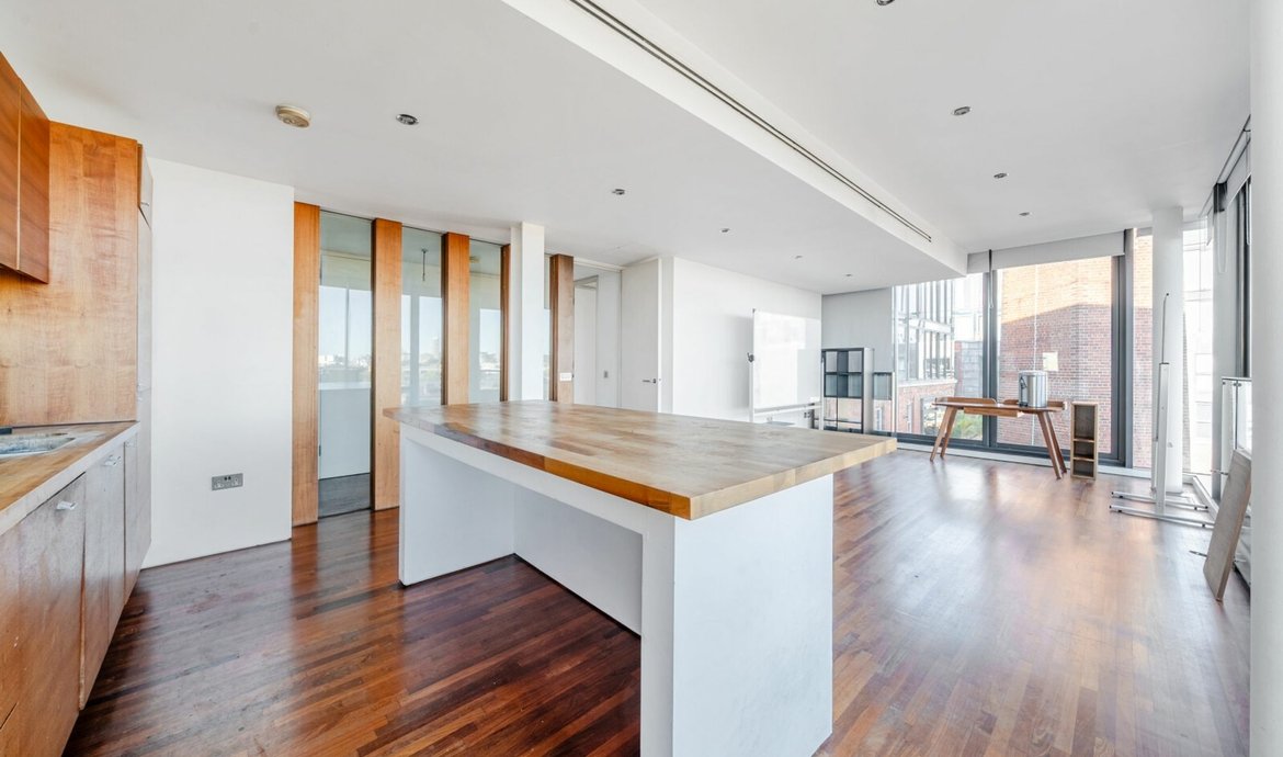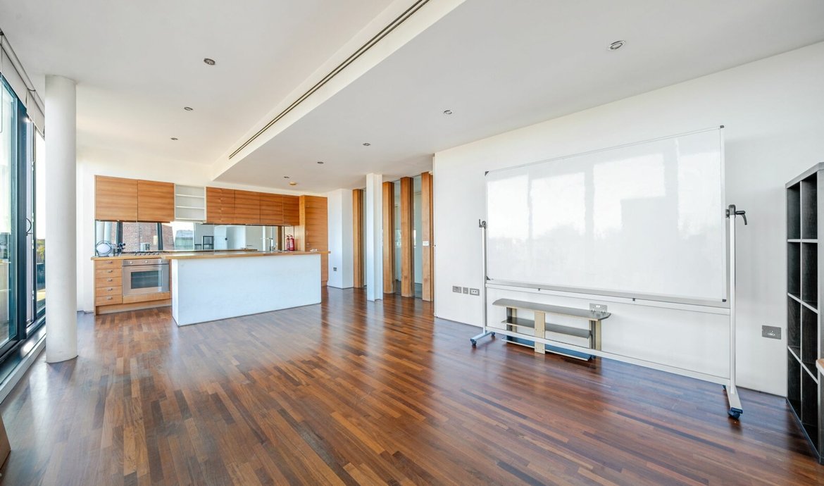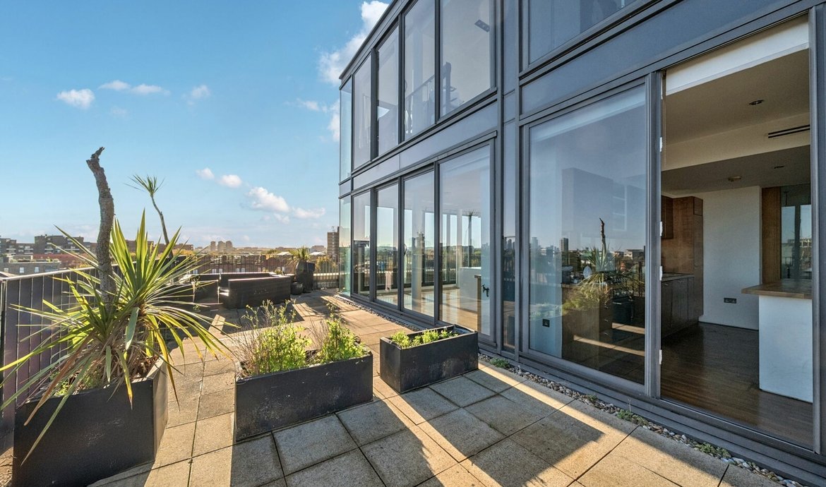 This superb property situated on the 5th floor has a light filled interior extending to almost 760 square feet. The solid wood floors throughout add a touch of elegance and warmth to the interior. The spacious living area has a one wall of floor to ceiling glass with doors and windows provide far reaching uninterrupted views. The crowning jewel of this residence is undoubtedly the roof terrace, offering breathtaking panoramic views of the surrounding cityscape, creating a perfect spot for entertaining guests. Enjoy the luxury of a 999-year lease from 2000, alongside the added benefit of a share of freehold ownership.