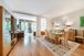 From the entrance of the apartment the incredible high ceilings and generous proportions are evident, with an extremely large kitchen to the right as you enter, and the wonderful 27 ft living and dining space ahead. The space is perfect for entertaining, as the large dining area fits a spacious six seater table with plenty of extra room.