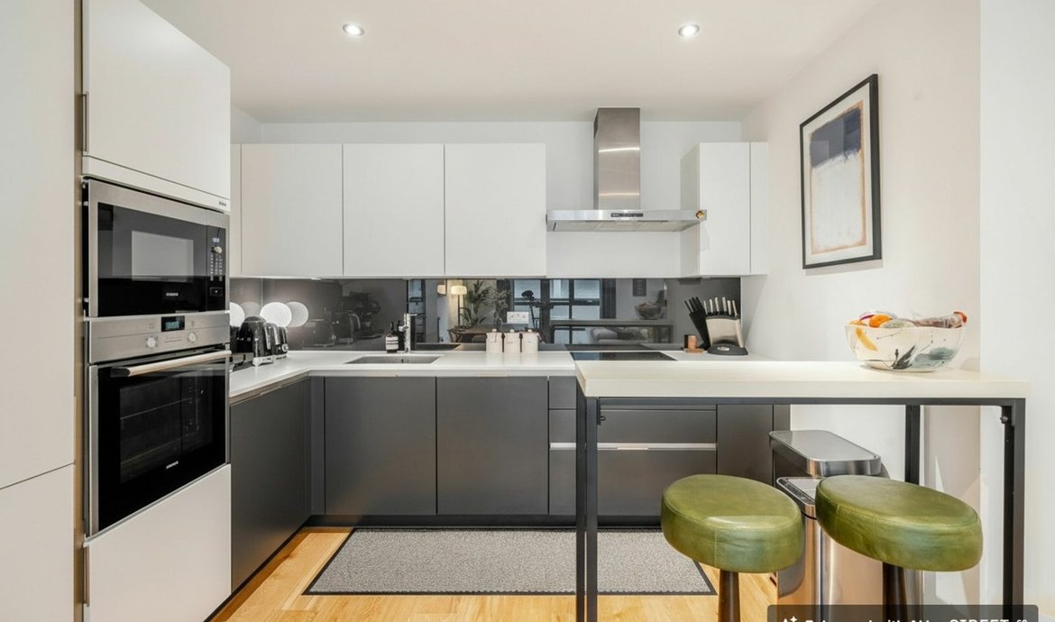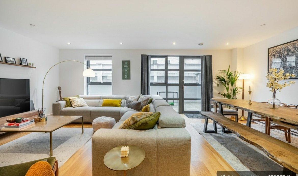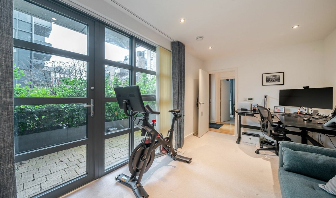 Quietly located in the this secure gated development, this exceptional three-bedroom apartment offers a rare opportunity to enjoy contemporary living in a highly convenient location close to Bermondsey Street. On the ground floor, with the unique feature of it’s own entrance from the courtyard, the property welcomes you with a particularly spacious living area, thoughtfully designed to provide both comfort and versatility for modern lifestyles. The bespoke contemporary kitchen is a true highlight, featuring sleek cabinetry, integrated appliances, and generous worktop space, ideal for both every-day cooking and entertaining guests. Engineered oak wood flooring flows seamlessly throughout the main living spaces, complemented by underfloor heating.