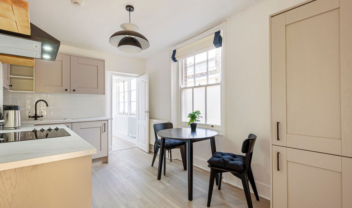 A bright and spacious one bedroom apartment on the third floor of a sought after Victorian mansion block, which forms part of the popular ‘Pullens Buildings’. This stunning flat has been recently refurbished and is immaculately presented, including a good size reception room, double bedroom, modern bathroom and separate fully fitted kitchen. Also benefitting from access to a lovely communal roof terrace.