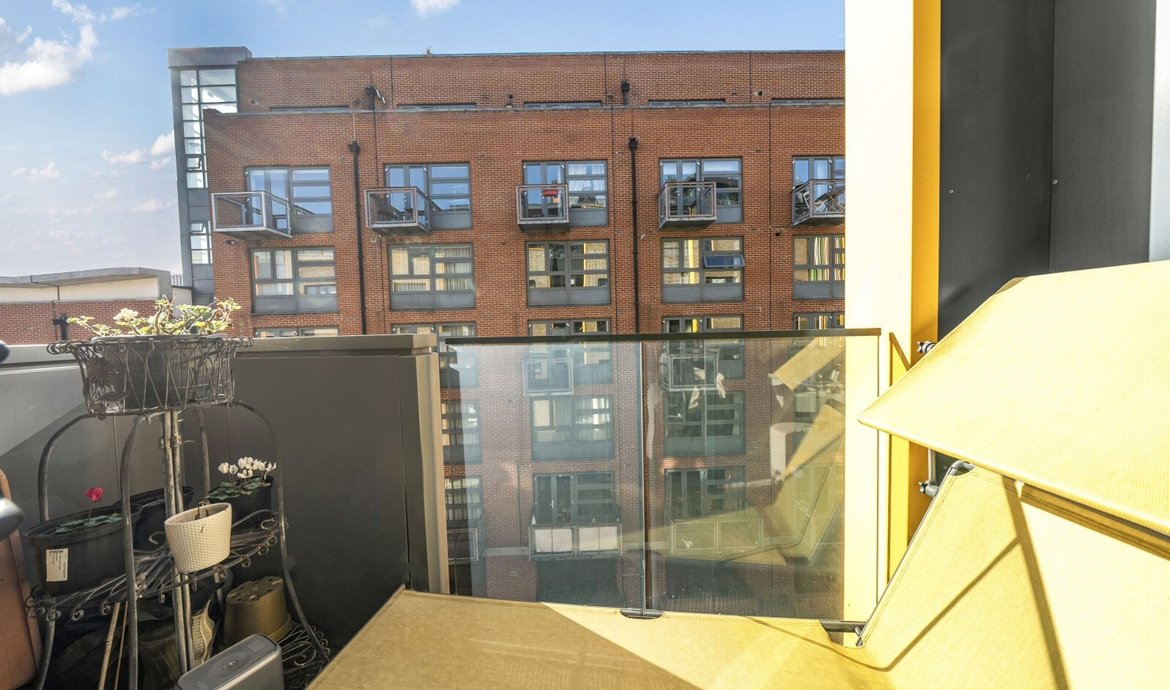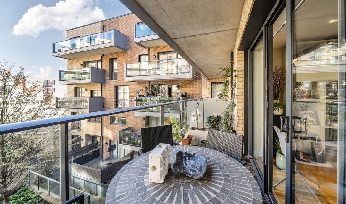 - South facing full width balcony overlooking the communal gardens