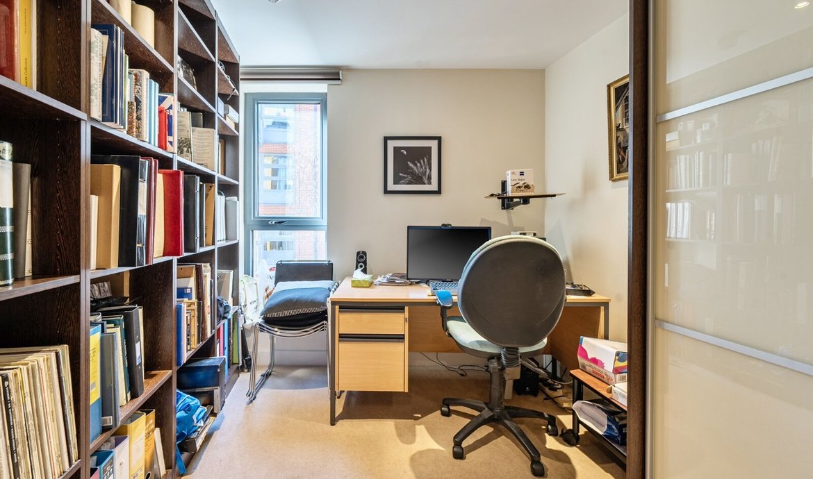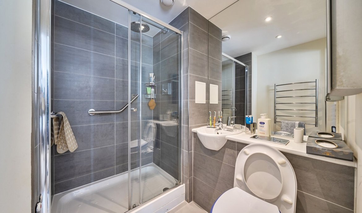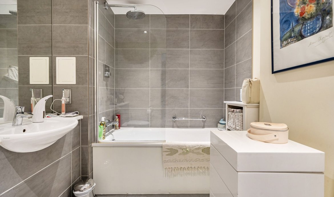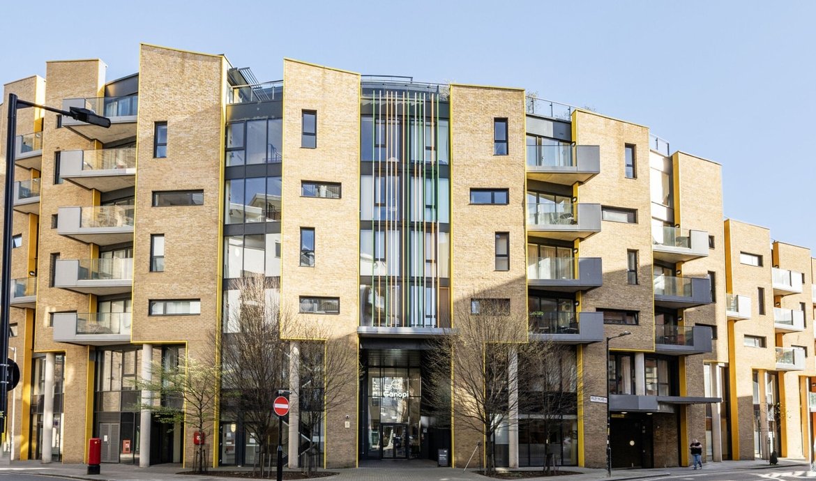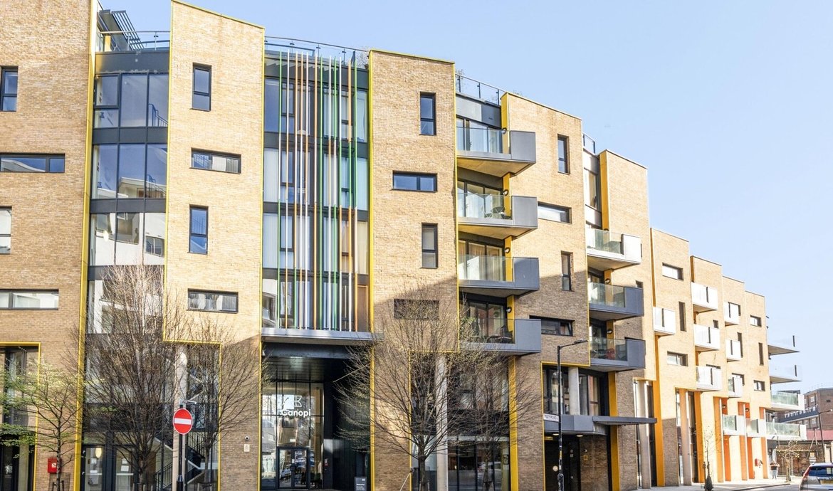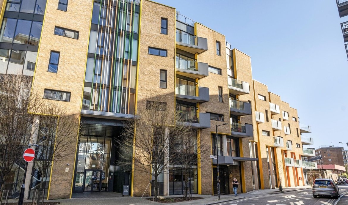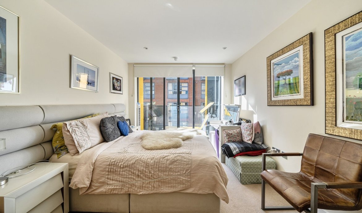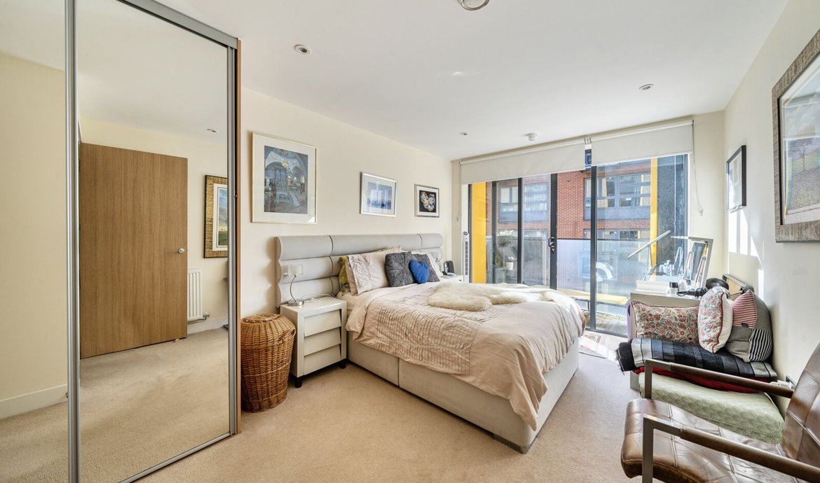 This superbly presented two bedroom flat is situated on the third floor of a popular and highly regarded development, offering a contemporary lifestyle in an enviable location. The property features a bright and spacious south facing living area, designed to make the most of the abundant natural light, with large floor-to-ceiling windows and direct access to a full width balcony (perfect for relaxing or entertaining) that enjoys sweeping views over the beautifully maintained communal gardens. The modern open-plan kitchen is thoughtfully laid out with integrated appliances and sleek cabinetry, ideal for both every-day living and entertaining guests. Both double bedrooms are generously proportioned and benefit from access to a second private balcony. . The principal bedroom boasts a luxurious en-suite bathroom, while the second bathroom is equally well appointed with high quality fixtures and fittings. The property benefits from ample storage space, a welcoming entrance hall, and secure bicycle storage for added convenience. Residents enjoy the peace of mind provided by an attentive concierge service.