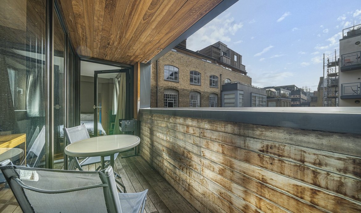 On the 2nd floor of this quietly located building standing in the corner of Bell Yard Mews, the interior features a south facing balcony accessible from both the living space and the double bedroom. The open plan kitchen is well fitted and equipped and the double bedroom, with access to the balcony, has a its own larger than average en suite bathroom/w.c. There is s separate cloakroom/w.c. for guests off the entrance hall.