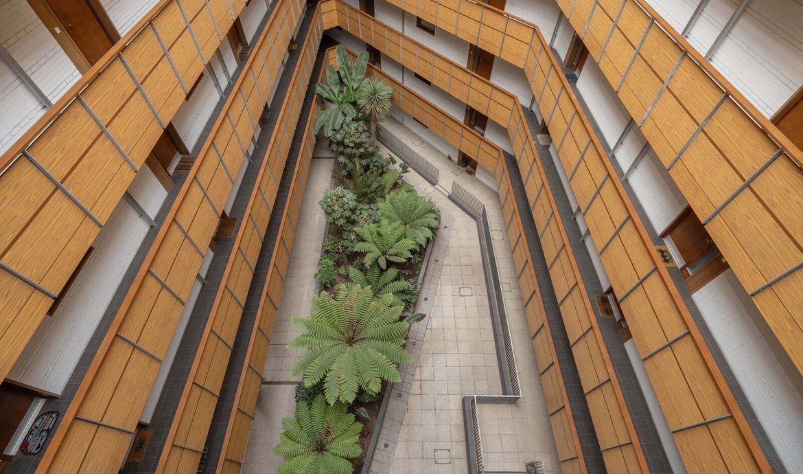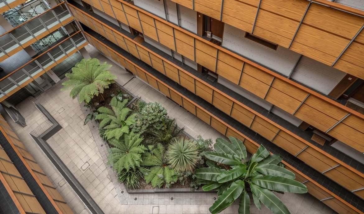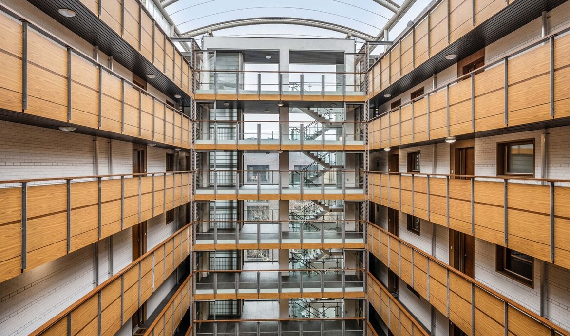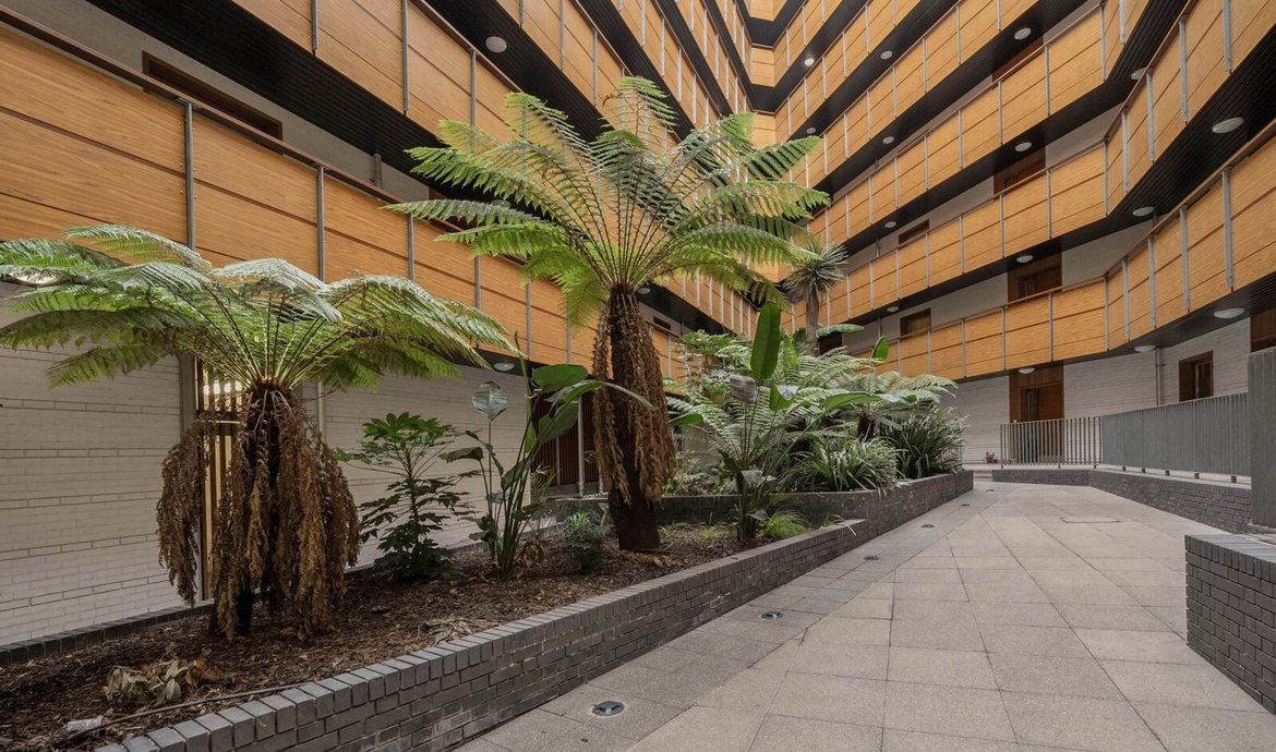 - Beautifully presented communal courtyard with striking atrium