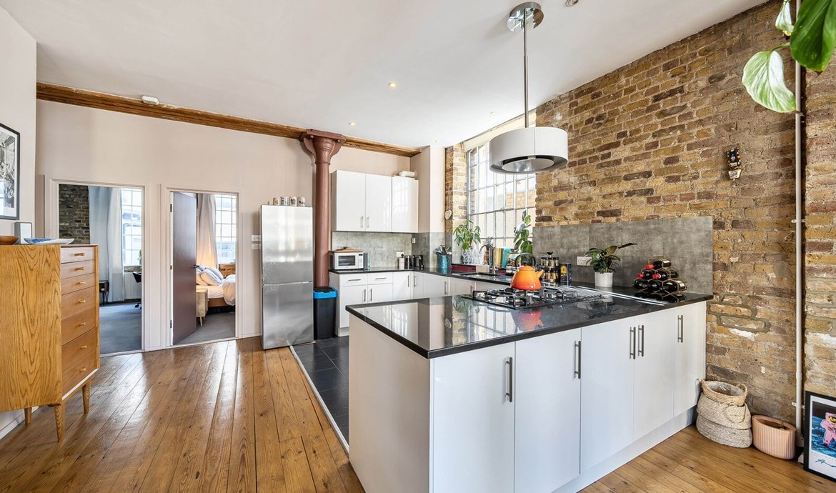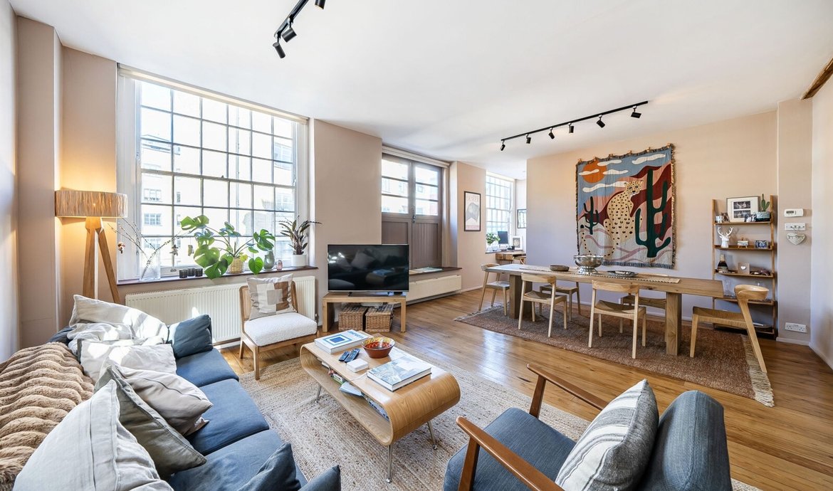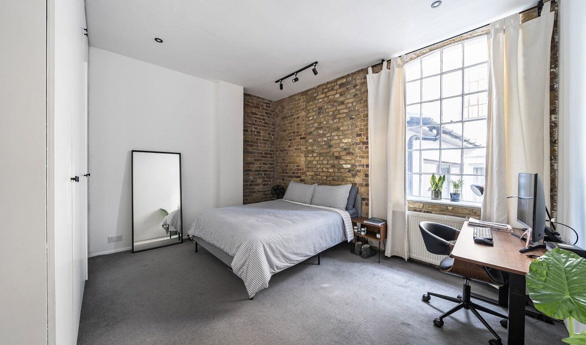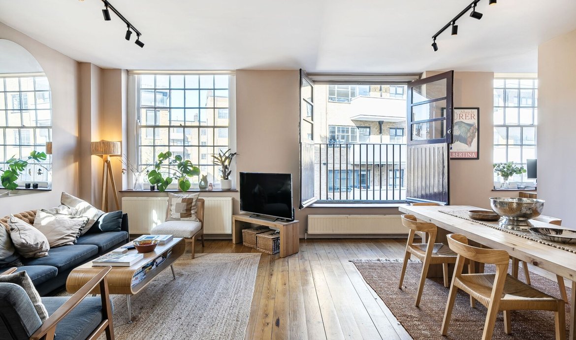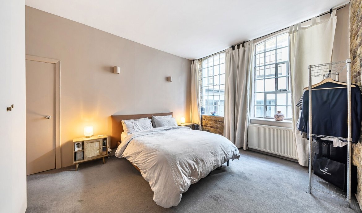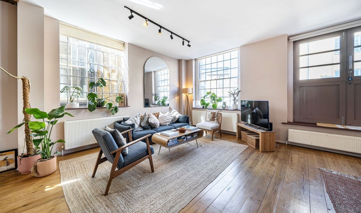 This exceptional two bedroom flat is situated on the first floor of a striking Victorian warehouse conversion, formerly the works of Illingworth and Ingham, a company supplying furniture to London’s schools and offices. Located within the sought-after Union Street conservation area, the property benefits from an abundance of period features, including original wood flooring, exposed brickwork and distinctive industrial ironwork, all of which contribute to its unique character and appeal. The expansive west-facing industrial windows flood the space with natural light, creating a fabulous living environment that perfectly captures the distinctive charm of loft living. A pair of original double doors open to a west facing Juliette balcony. The comprehensively fitted and fully equipped kitchen is seamlessly integrated into the main living area, making it ideal for both relaxed evenings in and entertaining guests. Both double bedrooms are generously proportioned, each featuring large industrial windows and fitted wardrobes, ensuring ample storage and a bright, airy atmosphere throughout. The large and superbly appointed bathroom/w.c. has been finished to a high standard, offering a luxurious retreat at the end of the day. Set in the traditional heart of the old ‘Borough, now celebrated for its world-class food scene, this property offers a rare opportunity to enjoy a vibrant urban lifestyle with The City of London just a 20-minute walk away. Retaining the heritage and architectural integrity of its industrial past, this flat blends historical features with modern comforts, making it a truly remarkable home in one of London’s most dynamic and culturally rich neighbourhoods.