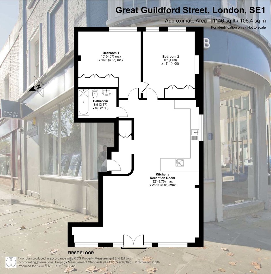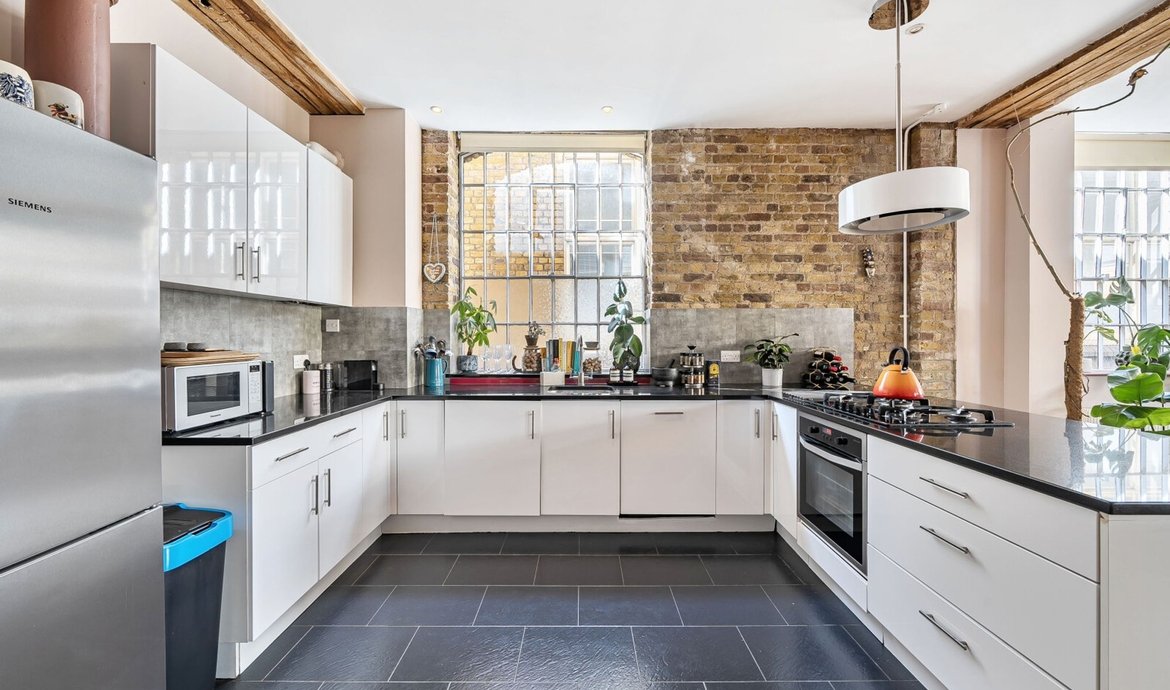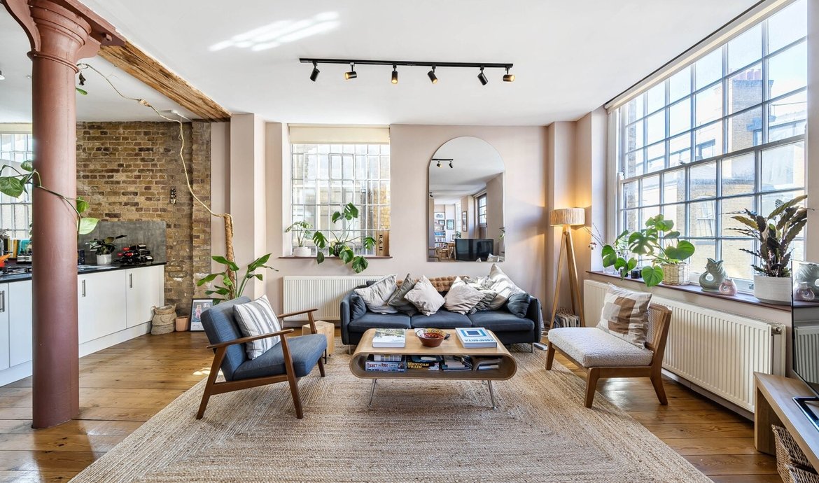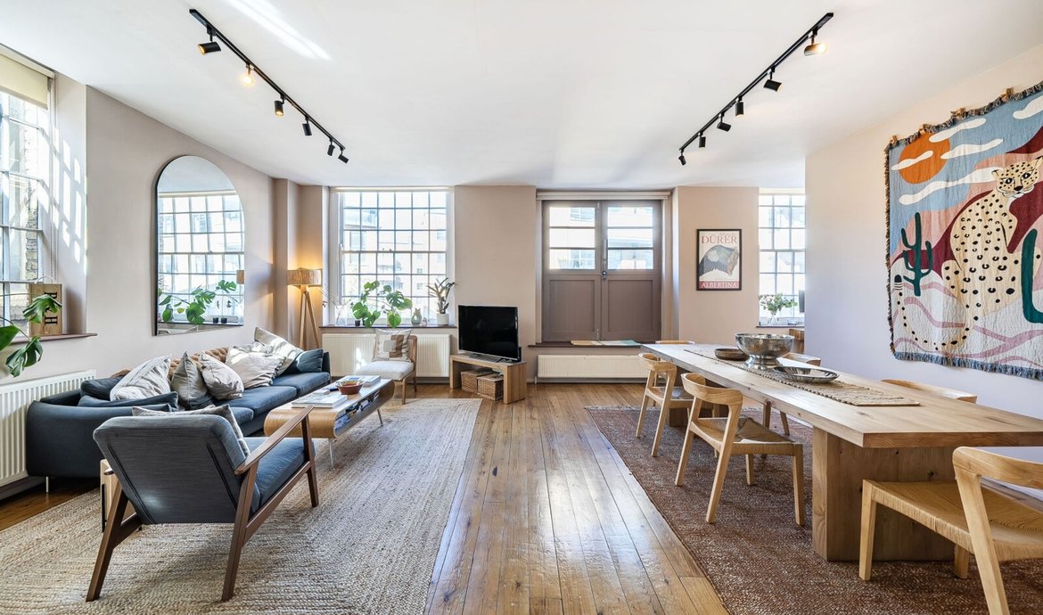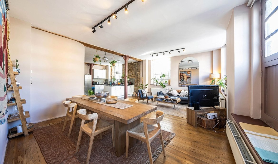This exceptional two bedroom flat is situated on the first floor of a striking Victorian warehouse conversion, formerly the works of Illingworth and Ingham, a company supplying furniture to London’s schools and offices. Located within the sought-after Union Street conservation area, the property benefits from an abundance of period features, including original wood flooring, exposed brickwork and distinctive industrial ironwork, all of which contribute to its unique character and appeal. The expansive west-facing industrial windows flood the space with natural light, creating a fabulous living environment that perfectly captures the distinctive charm of loft living. A pair of original double doors open to a west facing Juliette balcony. The comprehensively fitted and fully equipped kitchen is seamlessly integrated into the main living area, making it ideal for both relaxed evenings in and entertaining guests. Both double bedrooms are generously proportioned, each featuring large industrial windows and fitted wardrobes, ensuring ample storage and a bright, airy atmosphere throughout. The large and superbly appointed bathroom/w.c. has been finished to a high standard, offering a luxurious retreat at the end of the day. Set in the traditional heart of the old ‘Borough, now celebrated for its world-class food scene, this property offers a rare opportunity to enjoy a vibrant urban lifestyle with The City of London just a 20-minute walk away. Retaining the heritage and architectural integrity of its industrial past, this flat blends historical features with modern comforts, making it a truly remarkable home in one of London’s most dynamic and culturally rich neighbourhoods.