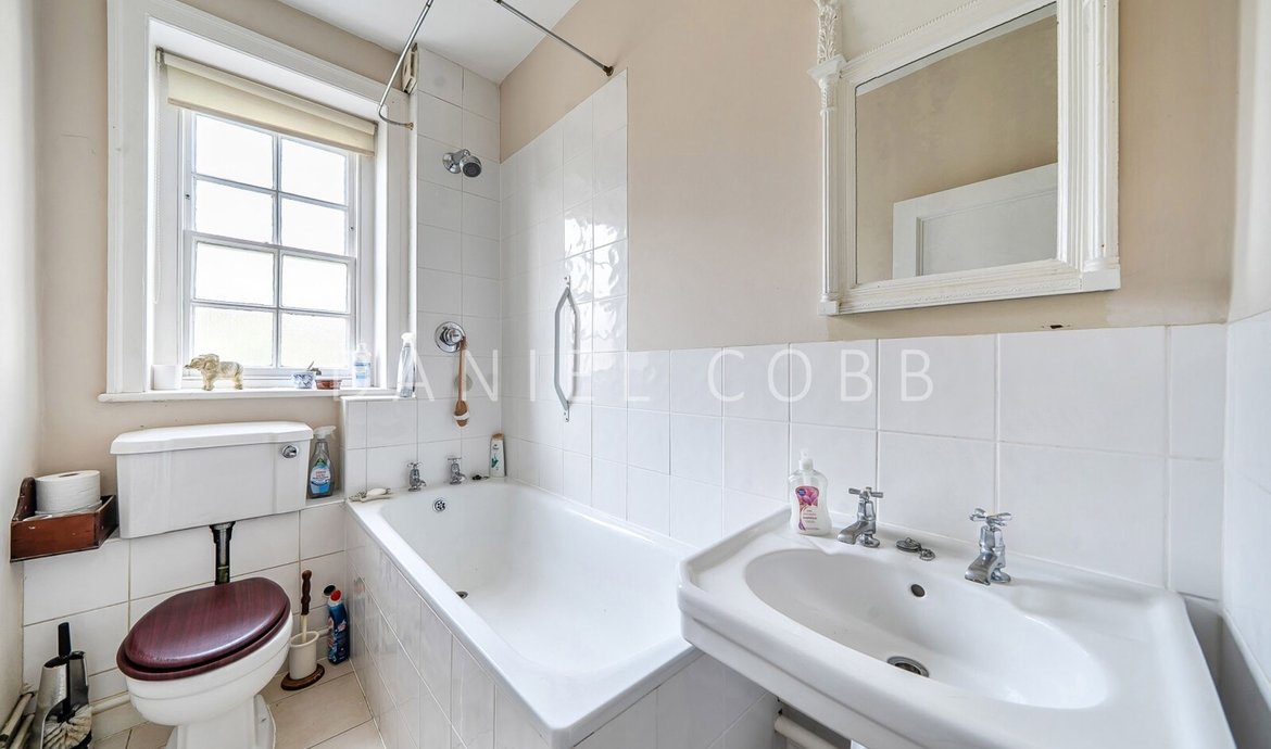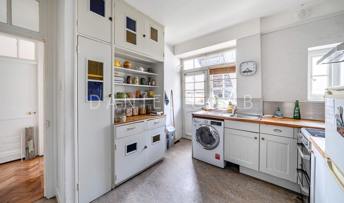 This large apartment is over 1,000 square feet and boasts many original features including fireplaces and parquet flooring. It has an elegant reception room, separate dining room, three double bedrooms, bathroom and a separate kitchen which has direct access onto the external rear staircase leading down to the bike storage area. The property also benefits from a beautiful communal garden.