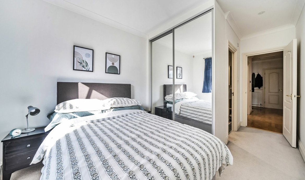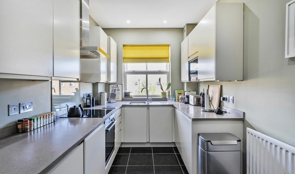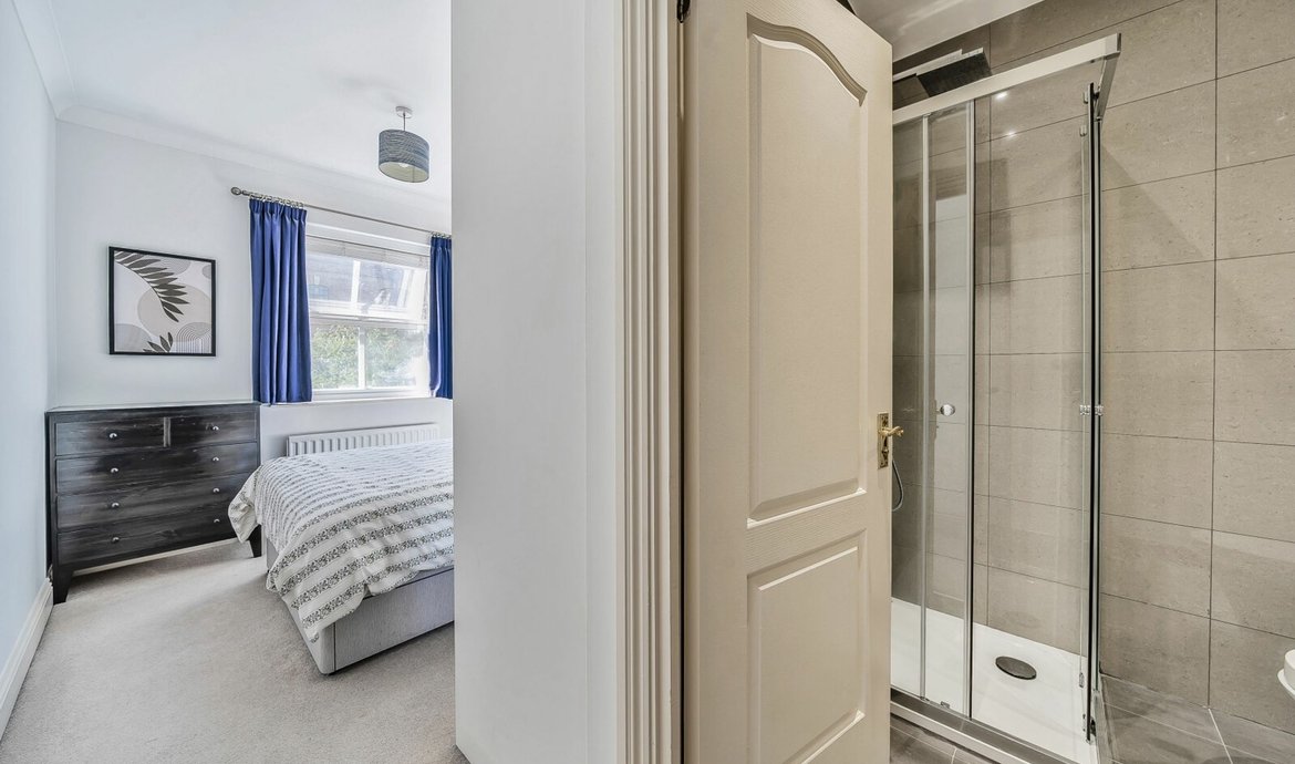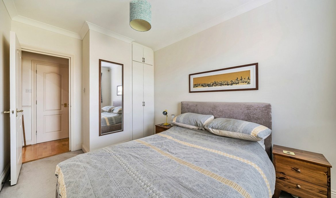 The secure and gated development was built in 1997 and the current owner bought the apartment in 2015. Since the purchase the kitchen, bathroom and en-suite shower room have been refurbished. The boiler was installed in 2022. The entrance hall leads to the spacious living space, bathed in natural light, with windows facing west over the well maintained communal gardens. The well fitted and fully equipped kitchen faces on to the central courtyard and communal gardens, and has ample space for a dining table. The main bedroom at the rear, facing west has a double fitted wardrobe and door to its own shower room/WC. The 2nd bedroom faces on to the courtyard again with a fitted wardrobe. The communal gardens are carefully maintained and the apartment has an allocated parking space.
