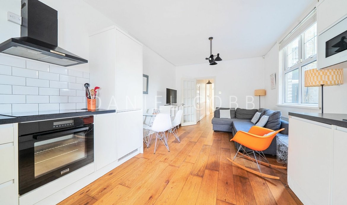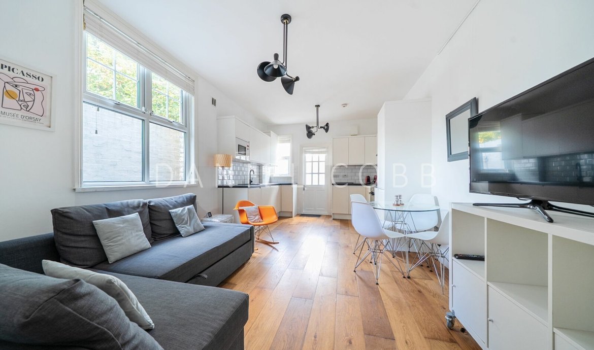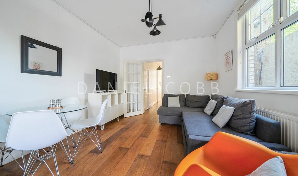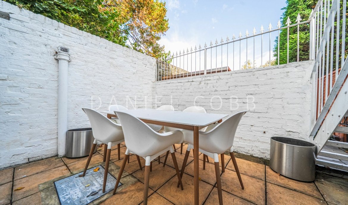This lovely period property has a flexible layout and is currently set up with two bedrooms (one could be used as a home office), using the open-plan kitchen as the reception space. It is very well finished throughout with a modern kitchen and bathroom and benefits from a private patio garden. The flat is currently set up as a turn-key rental and there is the option to buy it part furnished.