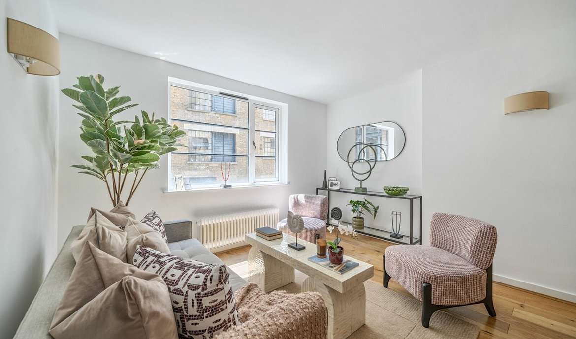 The newly refurbished first-floor apartment overlooks a charming courtyard in this iconic development which was once a tannery, located in close proximity to the vibrant Bermondsey Street. This unique residence presents a blend of characterful features and modern finishes, offering a stylish and comfortable living experience.