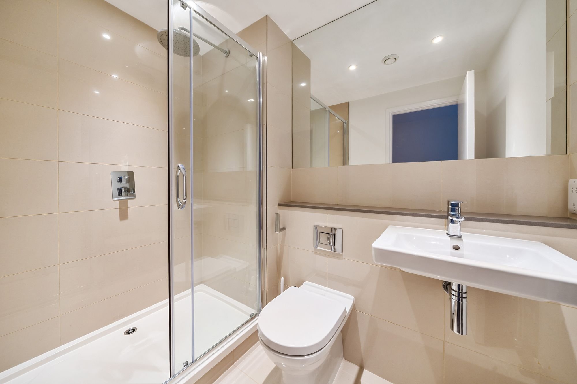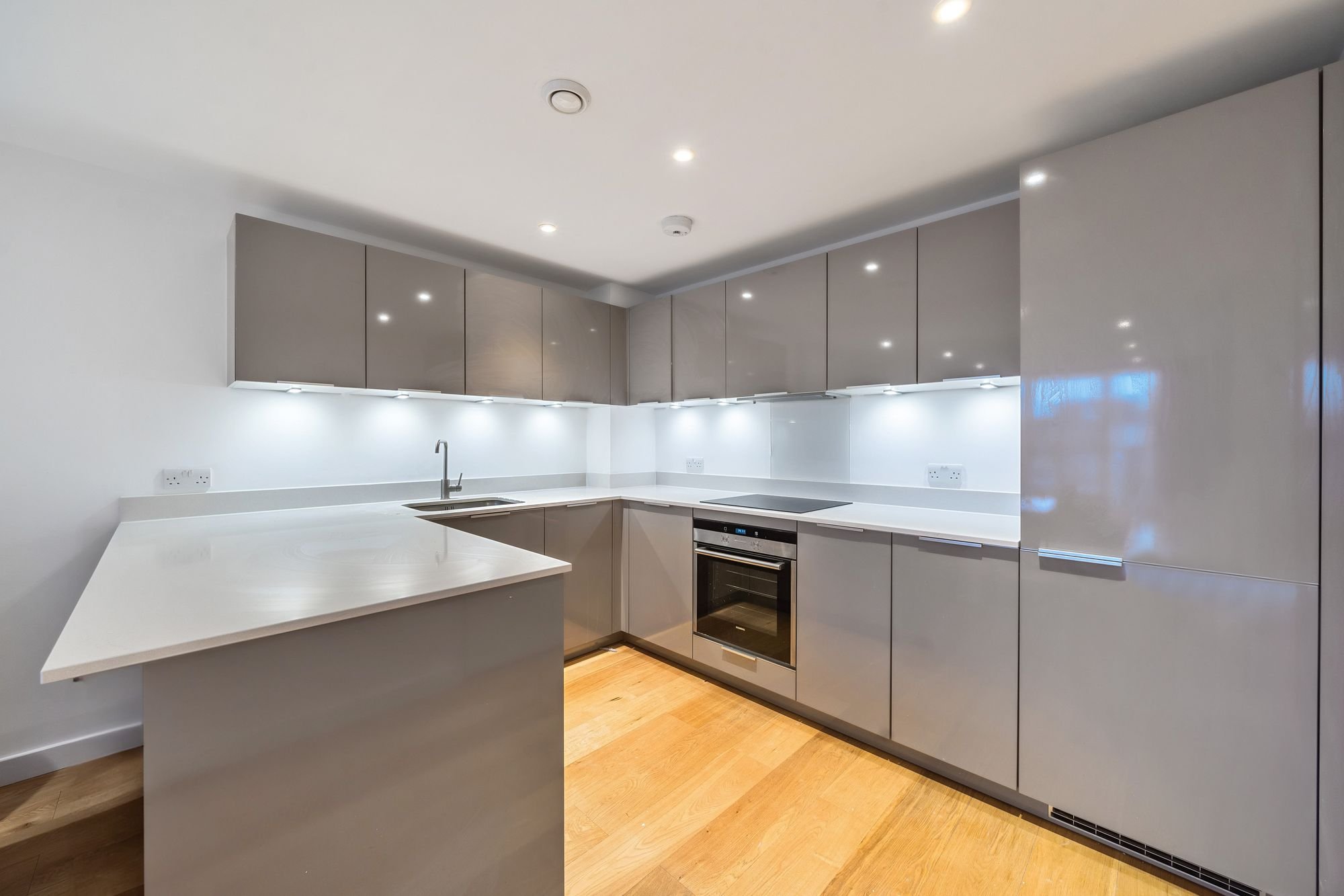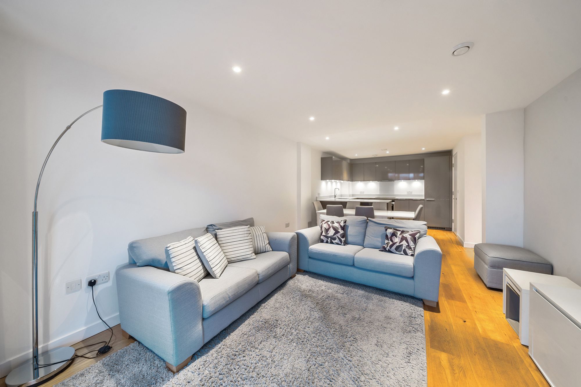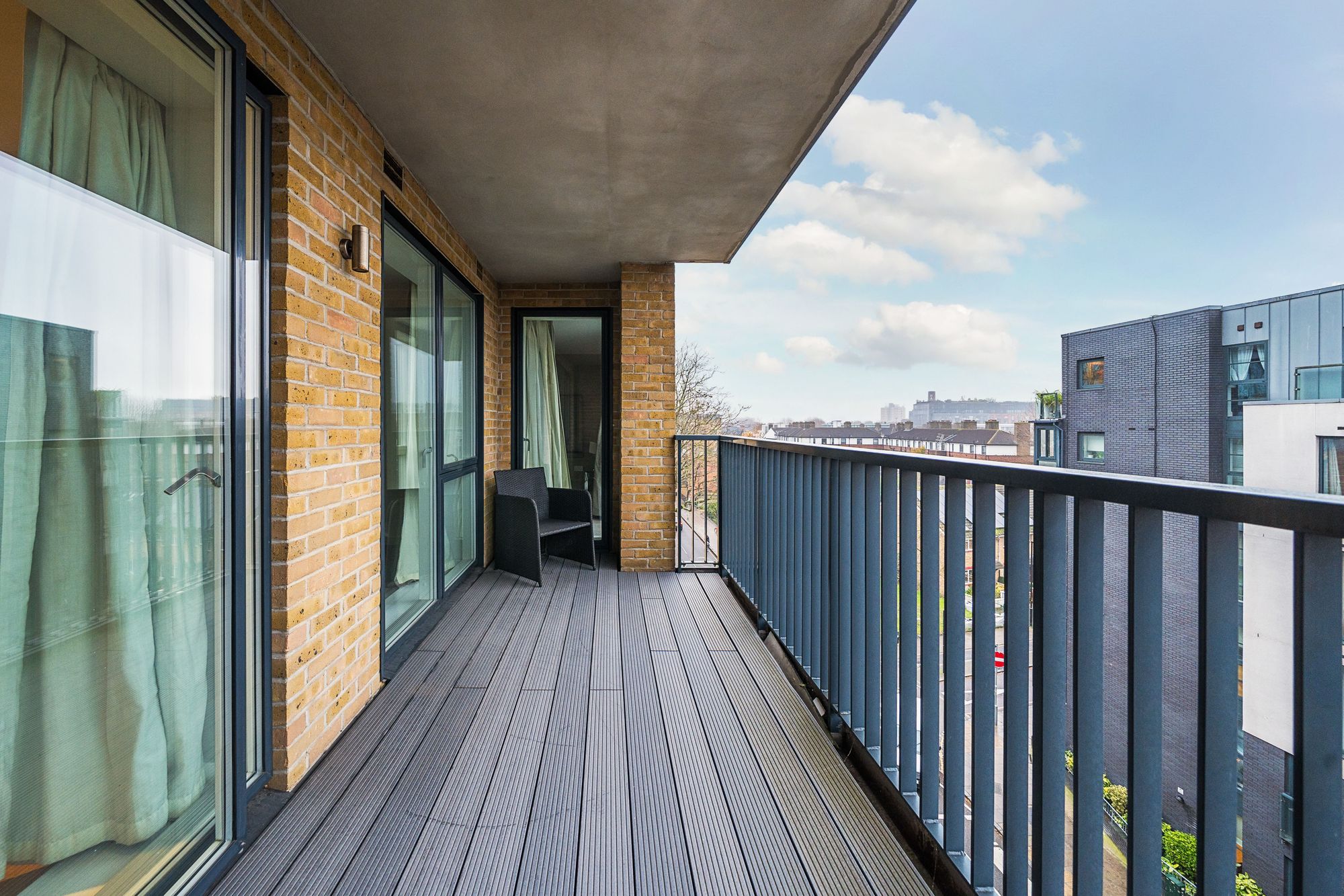 Completed in 2015, this striking development was built to the highest specification and features include a Leicht fitted kitchen with stone work surfaces and fully equipped with integrated Miele appliances, superbly appointed bathrooms with Villeroy & Boch suites, living areas with oak flooring, under floor heating throughout and whole house ventilation. On the 4th floor, the flat features a wide balcony, facing south. The generous living area is flooded with natural light from the floor to ceiling double glazed windows and doors to the balcony. The kitchen is comprehensively fitted and fully equipped with ample space for a dining table. Both the double bedrooms are almost similar in size and both with floor to ceiling windows. The flat is accessible by lift and stairs with secure bicycle store in the communal entrance hall.