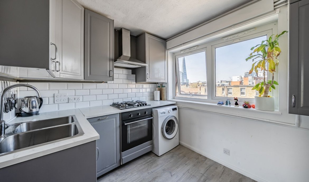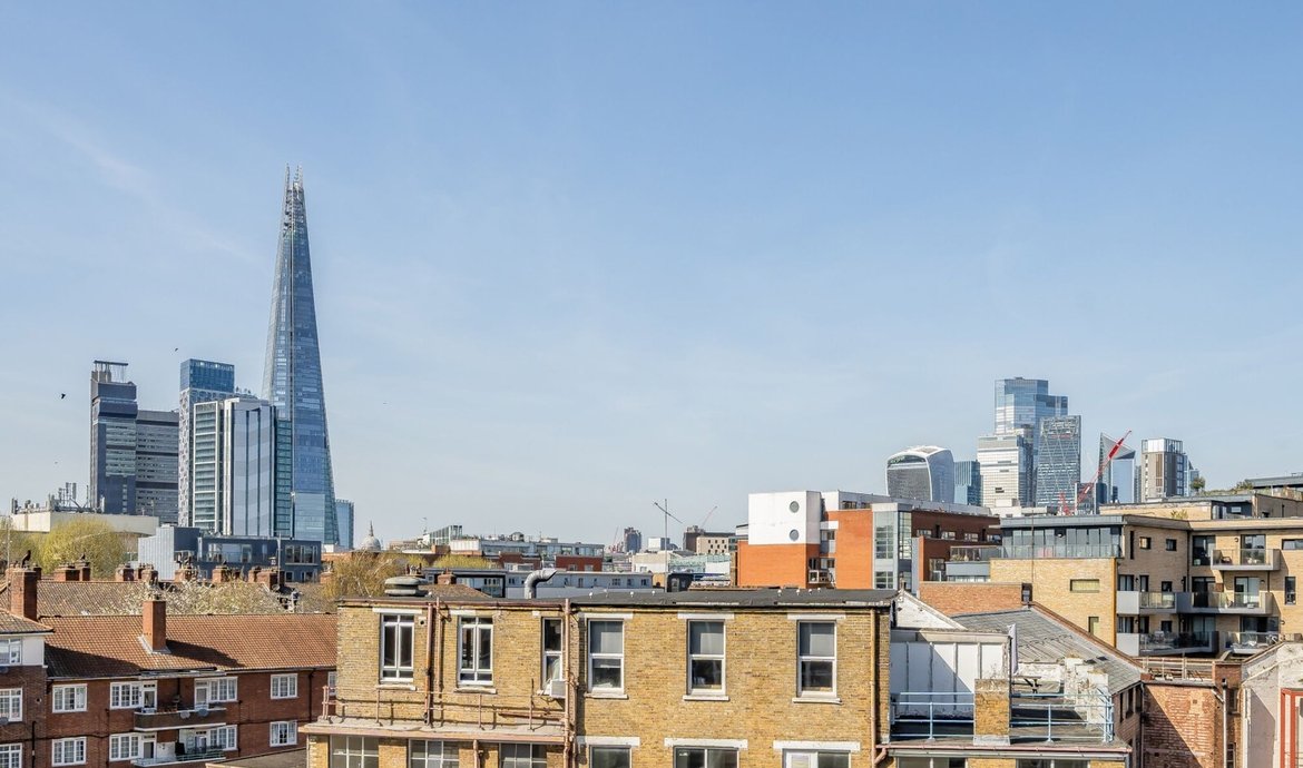 A superbly presented two bedroom flat and an exceptional opportunity to enjoy modern city living in a highly sought-after location, just a short and easy walk from London Bridge station. Situated on the fifth floor of a well-maintained building with both lift and stair access, the property boasts uninterrupted rooftop views across the city skyline, providing a unique outlook that can be enjoyed from the comfort of the south facing sitting room and balcony. The communal landing also has uninterrupted views of the capital’s skyline. The interior is in excellent condition, with a light and bright atmosphere throughout, thanks to large windows and a well-considered layout. The spacious sitting room is perfect for relaxing or entertaining, while the fully fitted kitchen comes complete with contemporary appliances and ample storage. Both bedrooms are generous doubles, offering plenty of space for furnishings and storage.