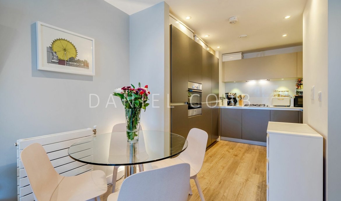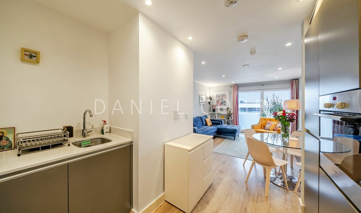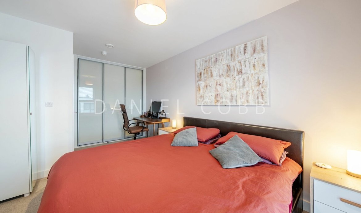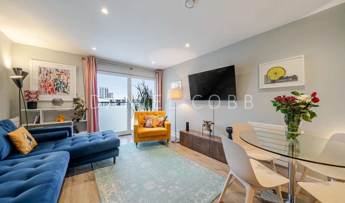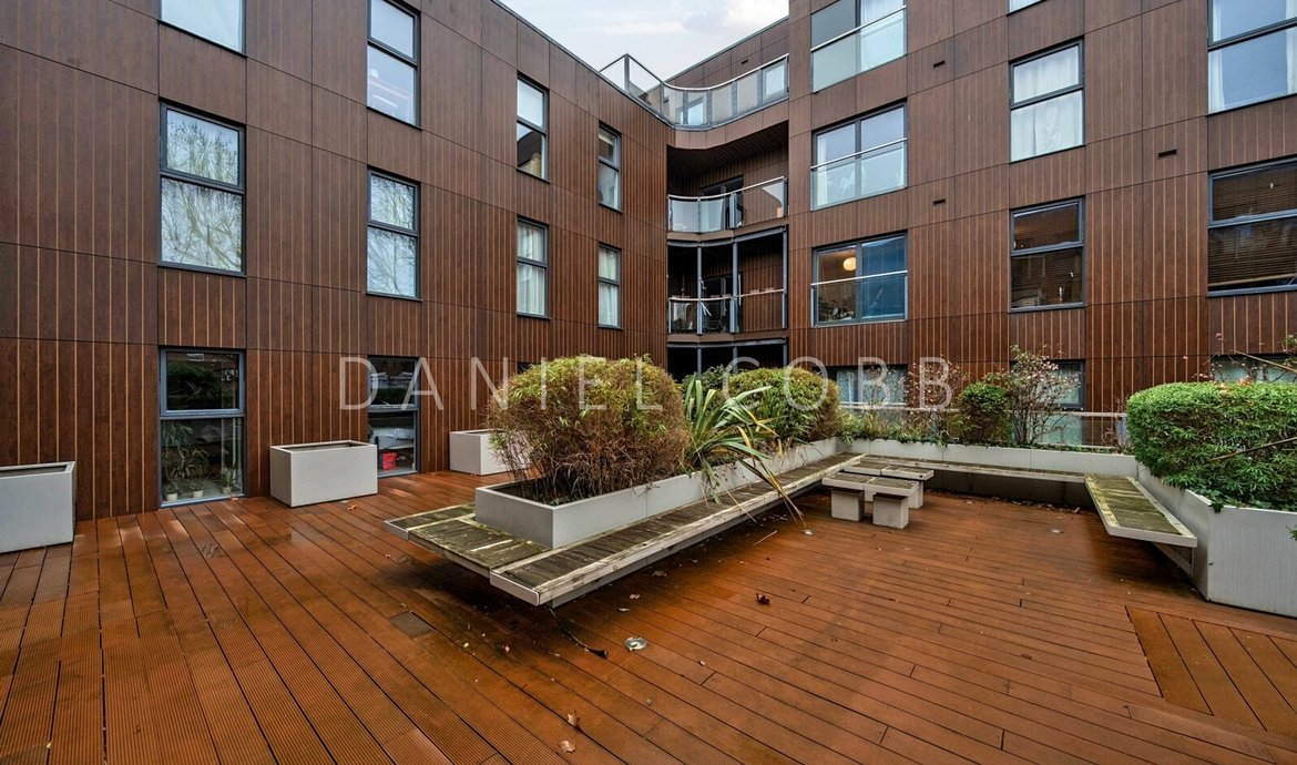 This stylishly finished property is located at the rear of the development on the fourth (top) floor. It has fantastic far reaching views from the open plan living space. The well laid out modern kitchen has integrated appliances and plenty of storage. The bathroom is very chic. The bedroom is also a very good size with built in wardrobes at one end. There also is secure bike storage and a communal garden with seating areas for residents.