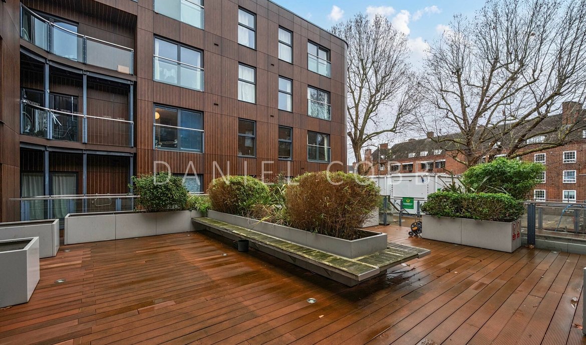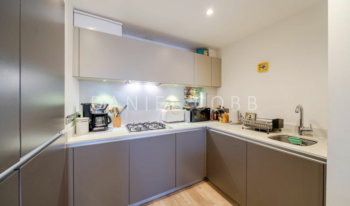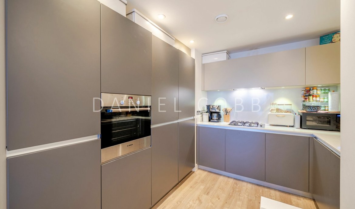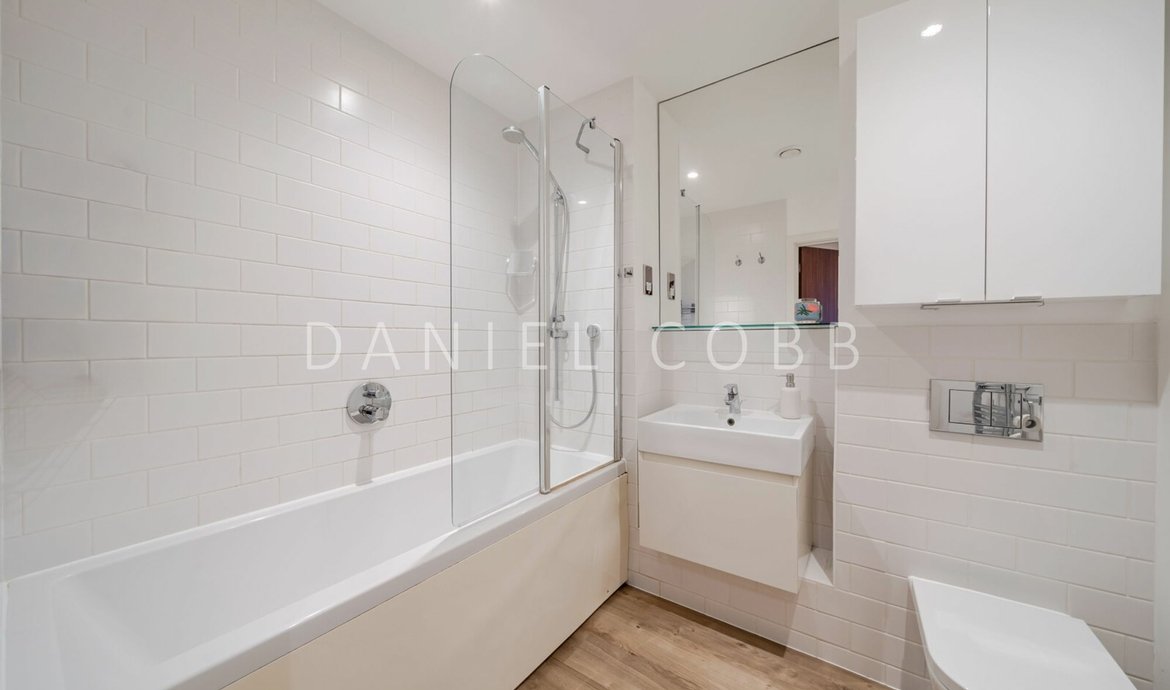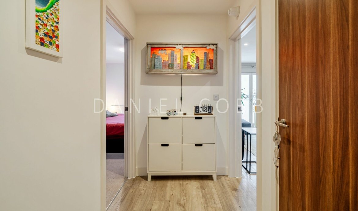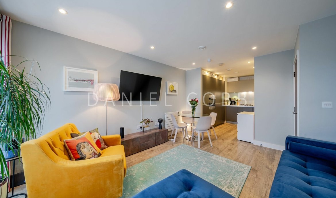 This stylishly finished property is located at the rear of the development on the fourth (top) floor. It has fantastic far reaching views from the open plan living space. The well laid out modern kitchen has integrated appliances and plenty of storage. The bathroom is very chic. The bedroom is also a very good size with built in wardrobes at one end. There also is secure bike storage and a communal garden with seating areas for residents.