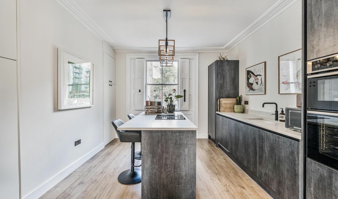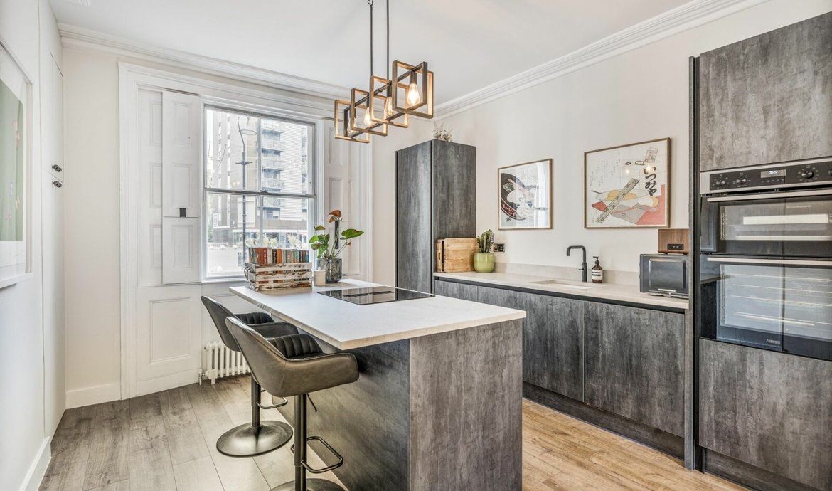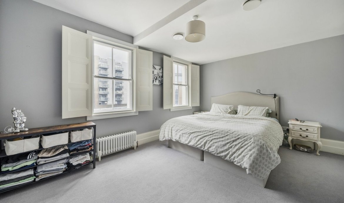 Dating from the early 1790’s, and quietly located in the corner of the historic Bermondsey Square, this Grade II Listed property has been renovated in recent years to create a contemporary residence over 4 floors, with numerous retained original features such as early Georgian floor boards, fire places (with operating chimneys), sash windows and wood panelling throughout the house. In 2011, the house was the subject of a sympathetic renovation with complete rewiring and Nest connected heating system, together with secondary glazing throughout the house integrated into bespoke wooden shutters made to match the existing wood panelling. The beautifully presented interior features a double length living space on the raised ground floor with a stylish and fully equipped fitted kitchen with island unit incorporating a breakfast bar and tall sash windows with secondary glazing and working shutters face on to Bermondsey Square. Double doors lead directly to the private walled garden. Leading also from the hall is a superbly appointed shower room, whilst the stairs lead to the lower floor with guest bedroom and additional space ideal as an office/study.
