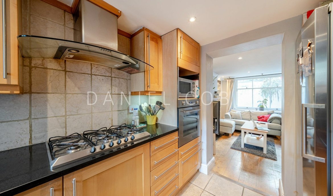 This lovely four storey house has a delightful kitchen/diner on the raised ground floor. On the lower ground there are two reception rooms. The access to the low maintenance garden, utility room and a WC is on the half landing between these floors. On the first floor is a large bedroom to the front of the property, and a good size family bathroom to the rear. On the second floor there are two more double bedrooms.