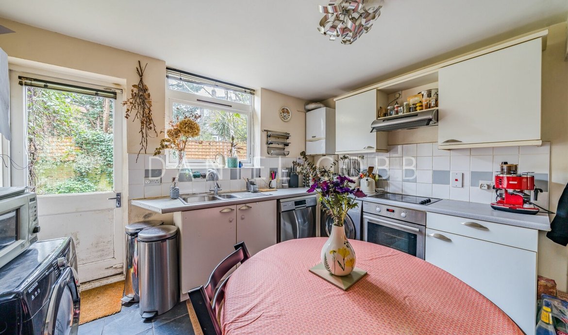 This delightful property is set within a garden which extends down the side and to the rear. It has a separate garage which is currently used as a studio. It has a lovely reception room with french doors which open out onto the garden. There is a separate kitchen/diner. Upstairs are three bedrooms and two bathrooms (one ensuite).