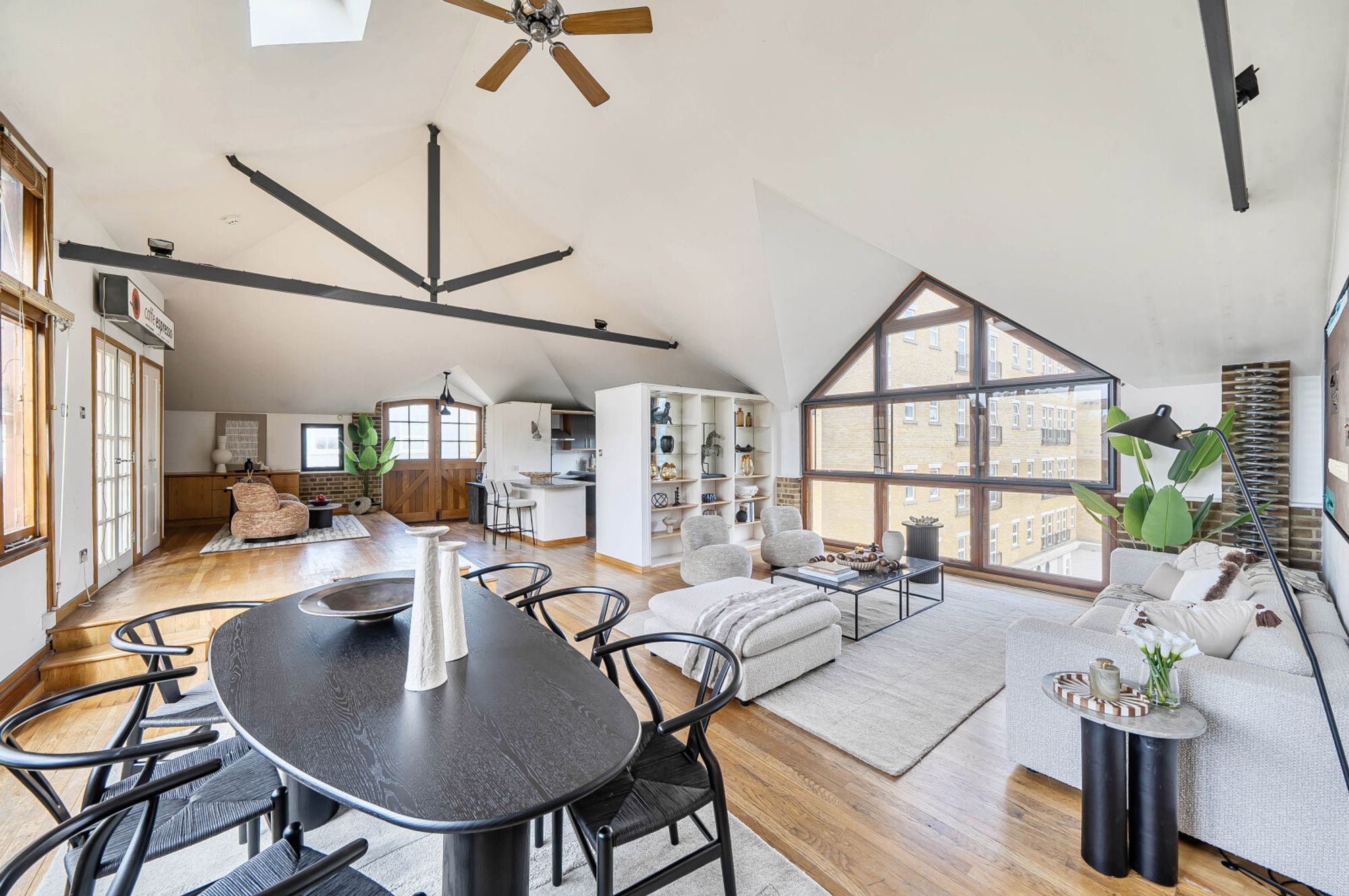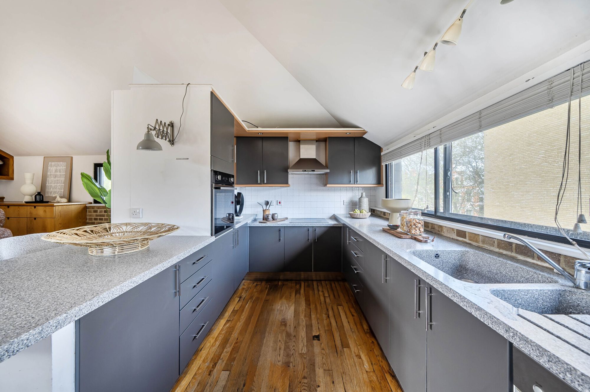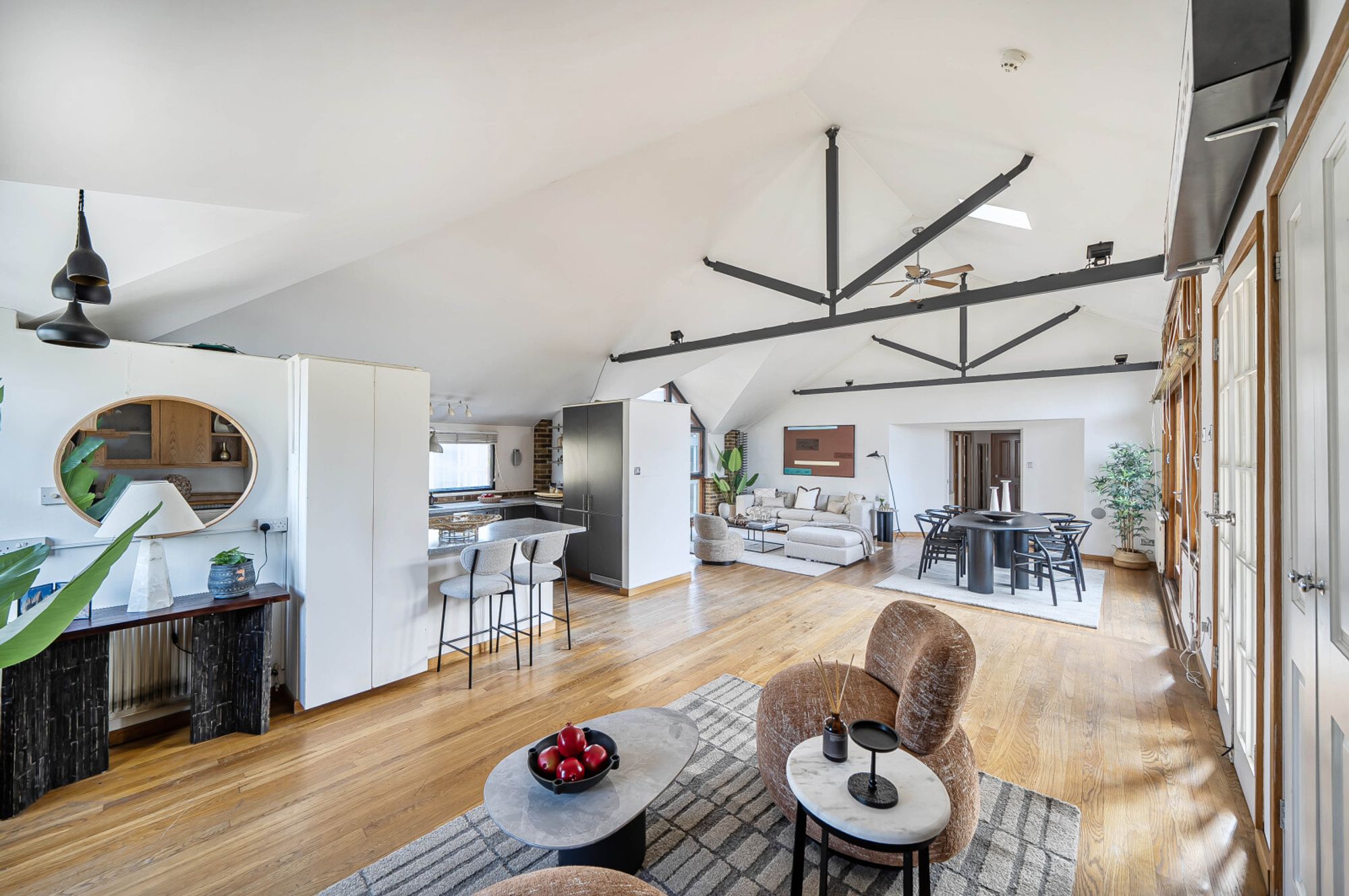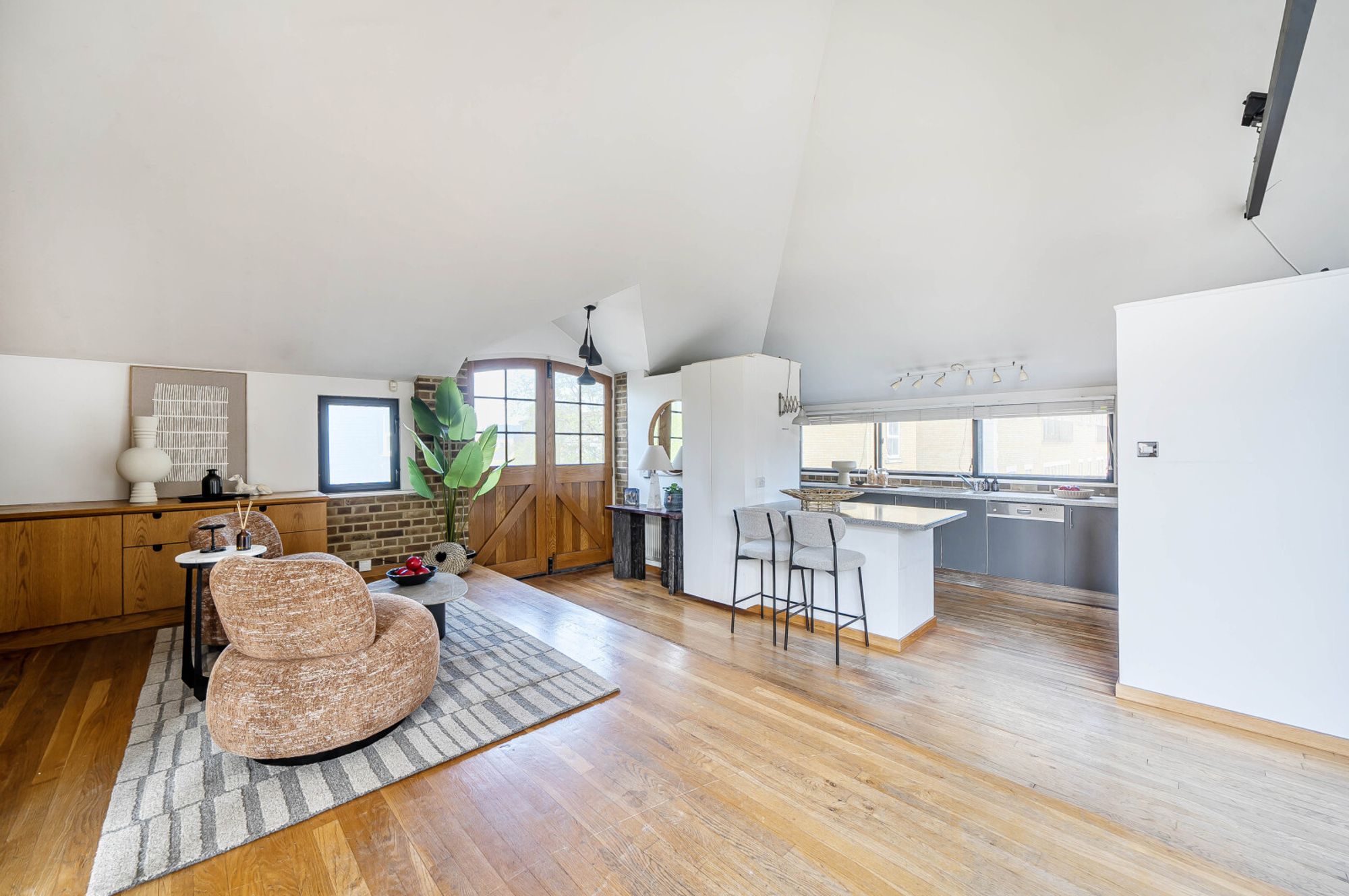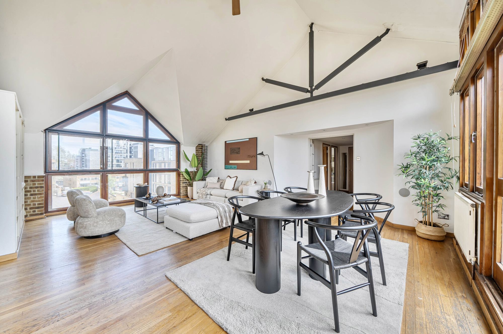 This exceptional three bedroom penthouse occupies the second and third floors of a striking conversion of a former Bible Factory, originally built in 1915, and is set within a quietly located and secure gated development with an allocated parking space. Accessed by both lift and stairs, the property offers an impressive and versatile living environment, where vast industrial windows flood the expansive open-plan reception and dining area with an abundance of natural light. The west facing roof terrace provides uninterrupted views of the capital skyline, creating a perfect backdrop for entertaining or relaxing. The comprehensively fitted and fully equipped kitchen is seamlessly integrated into the main living space, featuring high quality appliances and ample storage. The principal bedroom suite is thoughtfully designed with a generous dressing area and a stylish en-suite bathroom, offering a private retreat within the home. The second double bedroom is well proportioned and ideal for guests or family members, while the third bedroom, currently arranged as a study, benefits from a cleverly designed mezzanine sleeping area (making it suitable for flexible use as a home office, guest room or additional bedroom). Throughout the penthouse, the interior design combines contemporary finishes with original industrial character, resulting in a unique and welcoming atmosphere. Additional features include excellent storage solutions, efficient heating, and secure entry systems (providing peace of mind for residents). The development itself is professionally managed, ensuring communal areas are well maintained and residents benefit from a sense of community and privacy. The sale includes a share of the freehold.